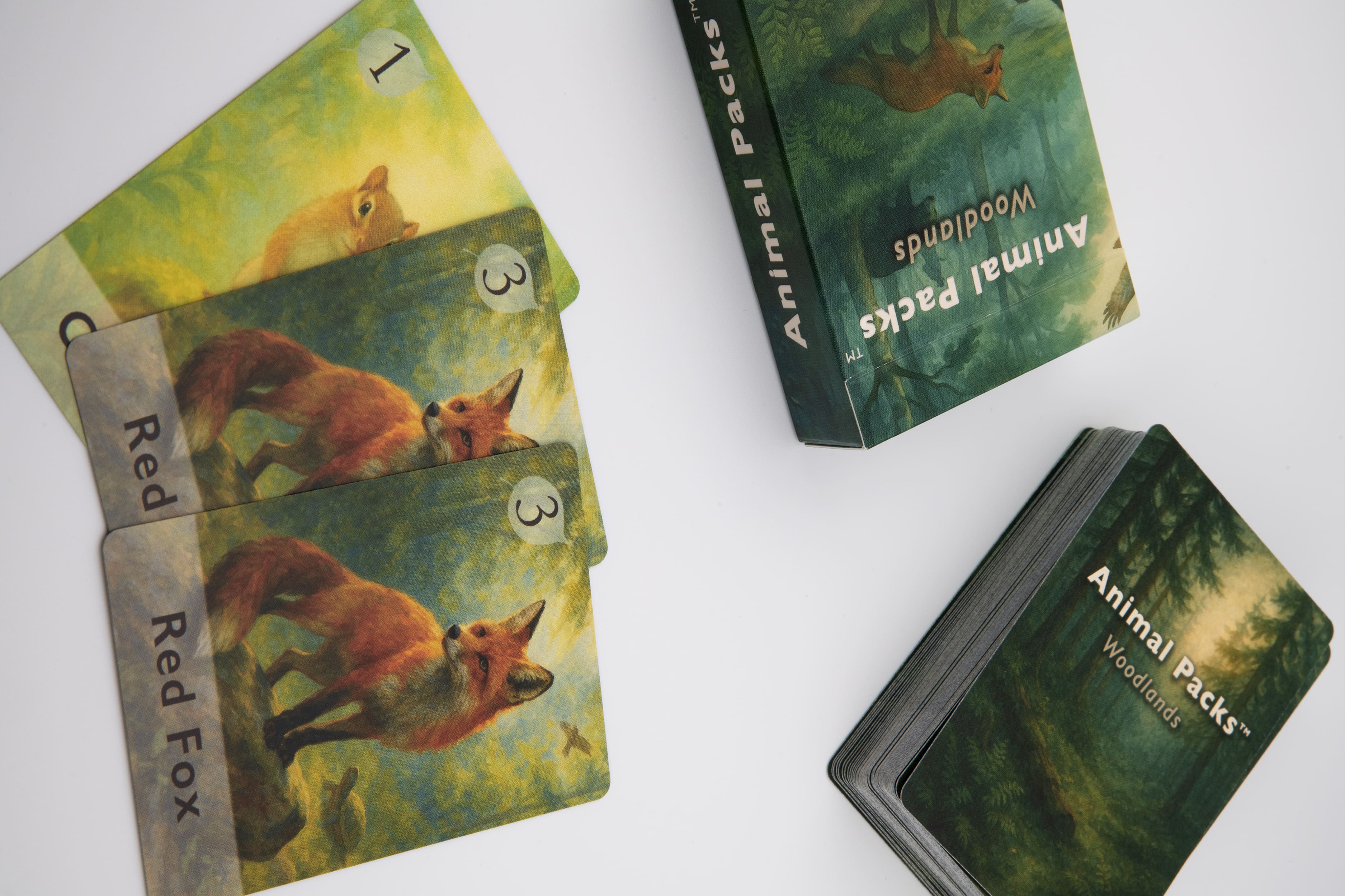 Animal Packs is a reimagined deck of cards, replacing suits with animals and ranking them 1-5 based on ecology. Animal Packs brings you endless possibilities to play, learn, and laugh with our original games like Howl or Dig, or classics like Go Fish, Old Maid, and War.
